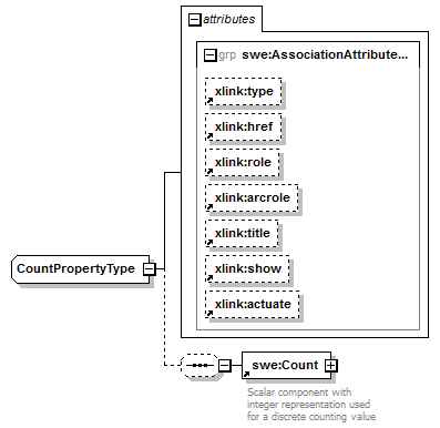 | source | <complexType name="CountPropertyType"> <sequence minOccurs="0"> <element ref="swe:Count"/> </sequence> <attributeGroup ref="swe:AssociationAttributeGroup"/> </complexType> |