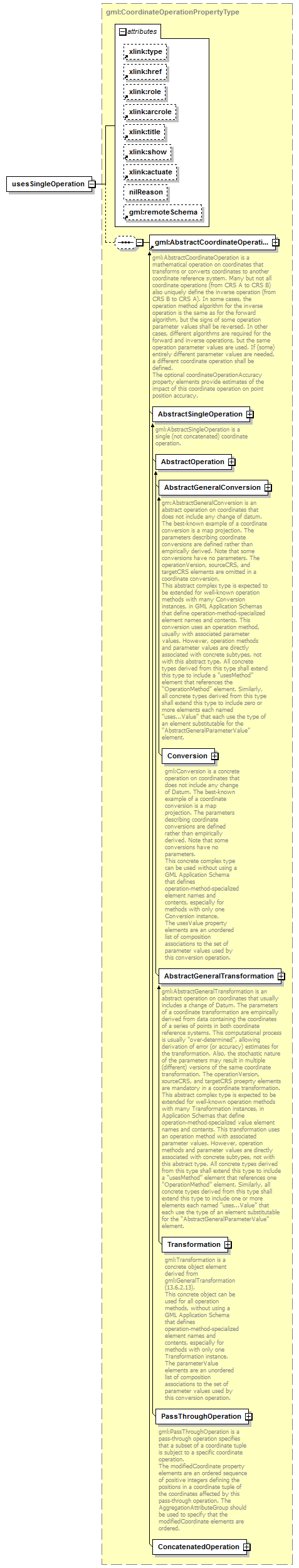 | source | <element name="usesSingleOperation" type="gml:CoordinateOperationPropertyType" substitutionGroup="gml:coordOperation"> <annotation> <appinfo>deprecated</appinfo> </annotation> </element> |